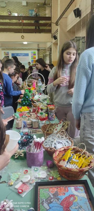 Ученици су продавали своје рукотворине, а прикупљена средства ће бити утрошена на помоћ другарима из наше школе у виду гардеробе, обуће и школског прибора. Организатор базара је вероучитељица Снежана Здравковић уз подршку осталих наставника наше школе.