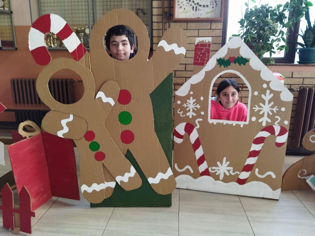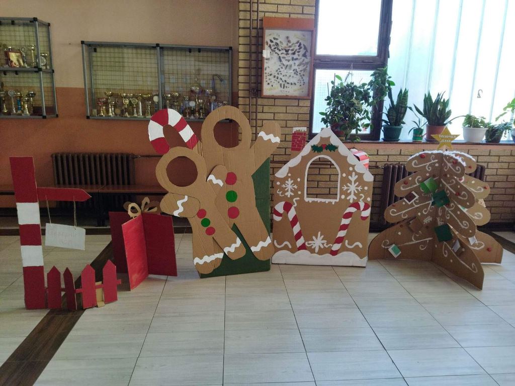 Школско звоно је објавило крај радионице и почетак новогодишње атмосфере у холу, где су сви ученици чекали у реду да направе своје прве новогодишње фотографије са другарима и уживају у песми и игри.