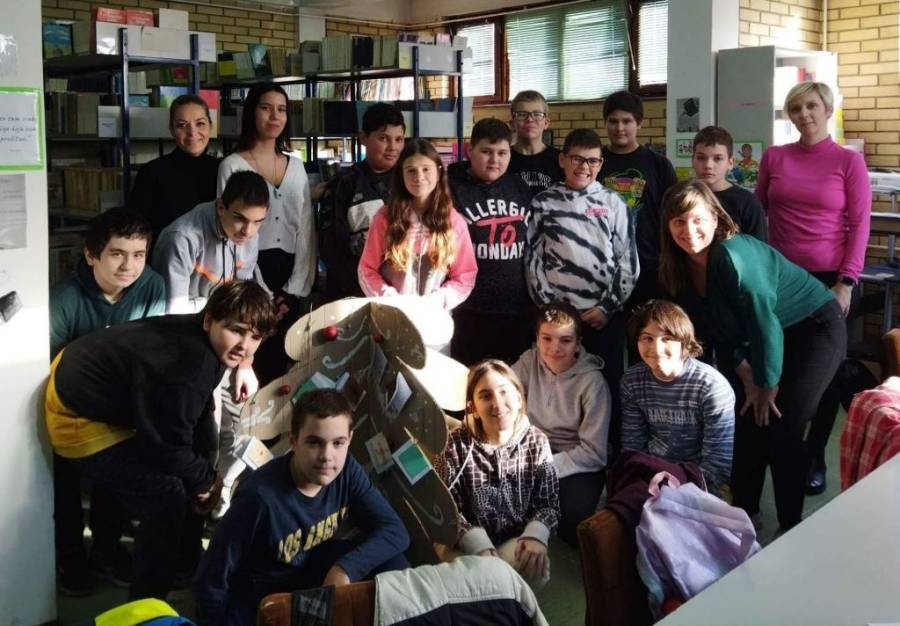 У сусрет Новој години кренули смо са празничним песмама и жељама. Циљ радионице је развијање маште, говора и језика, богаћење речника путем песничких израза, слика и рима. Подстицали смо ученике да направе прве песничке кораке и осмисле неки стих. Од стихова смо правили украсе, од украса смо правили строфе и песме и тако је настала наша песничка јелка, заједно са модерним украсима за фотографисање.