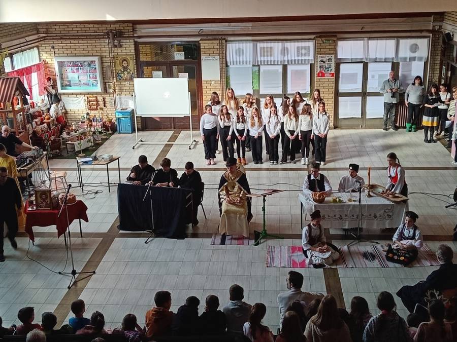 Светосавска приредба је у нашој школи и ове године протекла на најбољи могући начин. Ученици су били на висини задатка и овог пута и заједно са својим наставницима и вероучитељима спремили богат програм. Ученици виших разреда су са вероучитељицом Снежаном Здравковић и наставником српског језика Драгомиром Бурнаћем одиграли су драмски приказ Савиног живота и духовног подвизништва са једне стране, док је са друге приказан значај породице и свест о потребама образовања и учења. Свечану приредбу је употпунио школски хор којим руководи наставница музичке културе Ивана Делибашић, а ученици нижих разреда су се представили казивањем светосавских песама, а спремили су их учитељице Весна Лучић, Ангелина Давидовић, вероучитељ Владимир Петковић, који је и молитвено пресекао славски колач, заједно са протом оцем Стевом, гостом наше данашње световине, као и учитељица Живанка Јованов Петровић. На почетку програма великом броју присутне деце и родитеља обратила се директорка школе Драгана Крстић истакавши значај Светог Саве за наше школство, али и за духовни идентитет и пример који треба да следимо.