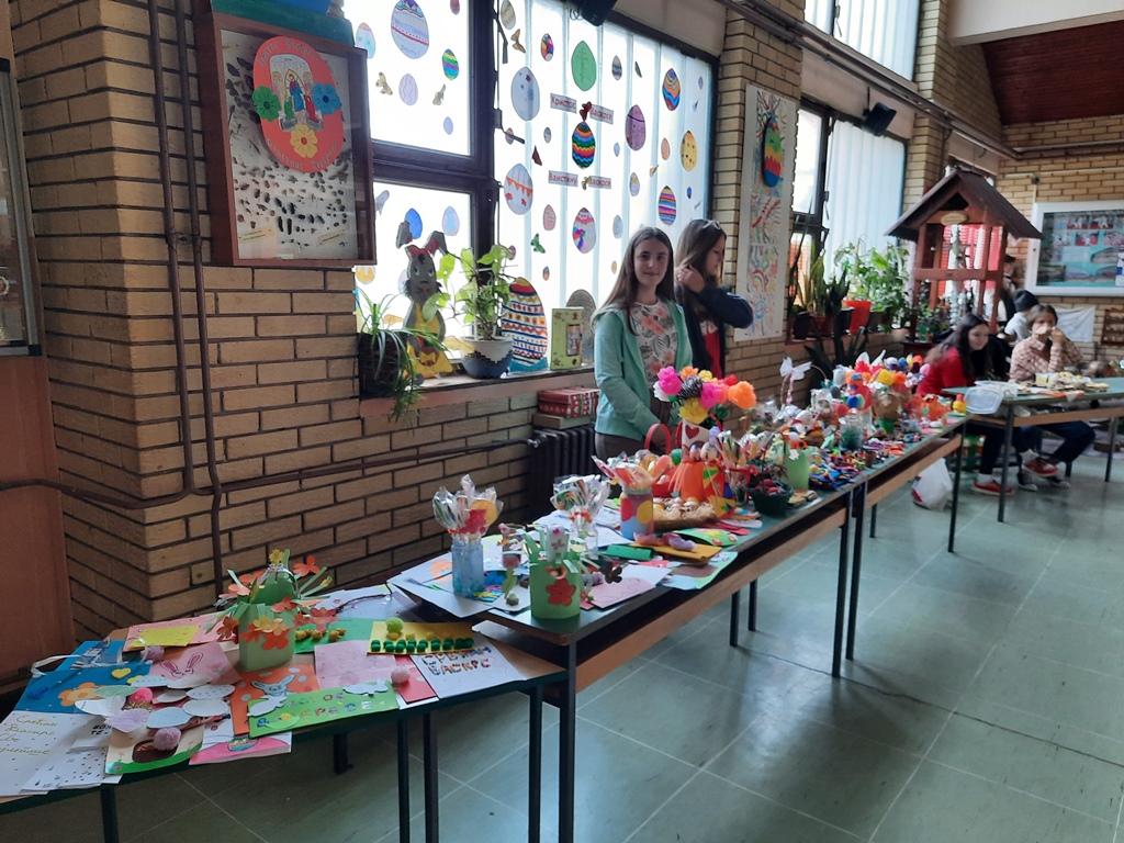 И ове године вероучитељица Снежана Здравковић је организовала хуманитарни васкршњи базар са жељом да се помогне социјално угроженим ђацима. Волонтери су продавали рукотворине израђене на часовима веронауке, ликовне културе и технике и технологије, а Извиђачки одред „Црне роде“ је продавао колаче и лимунаду.