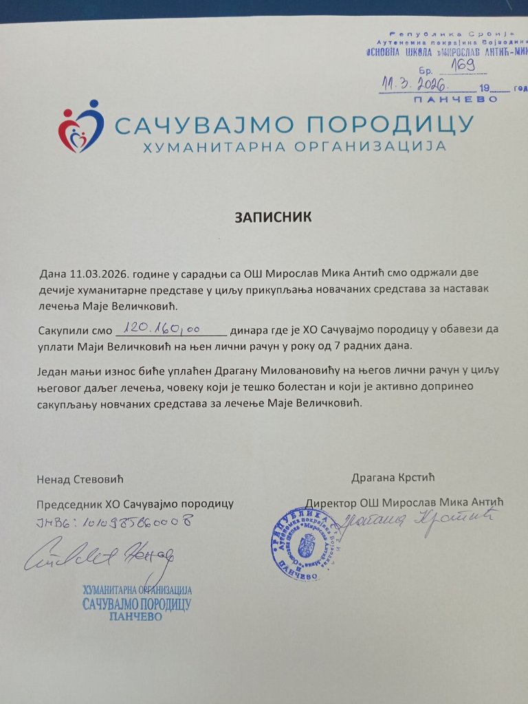 Сав прикупљен новац ће бити уплаћен за лечење: