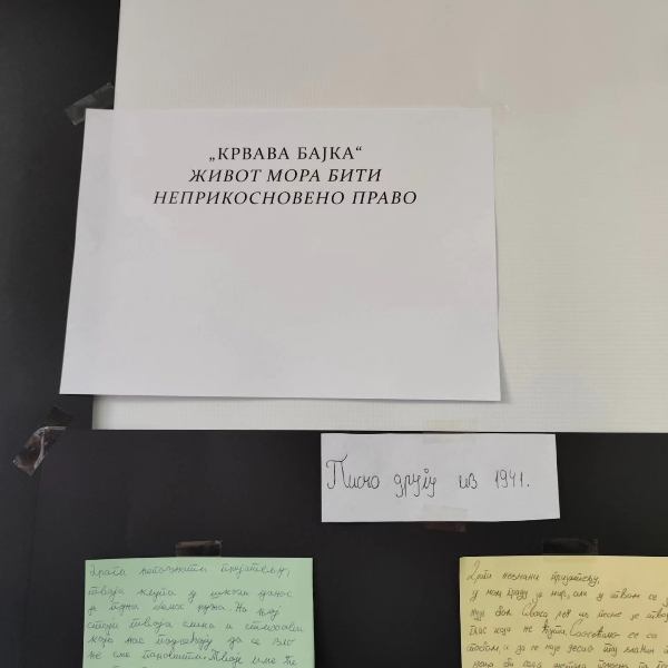 Једна група ученика је писала писмо замишљеном другу из 1941. године, друга група је правила дрво врлина, док је трећа група правила антиратни манифест у виду зидних новина.