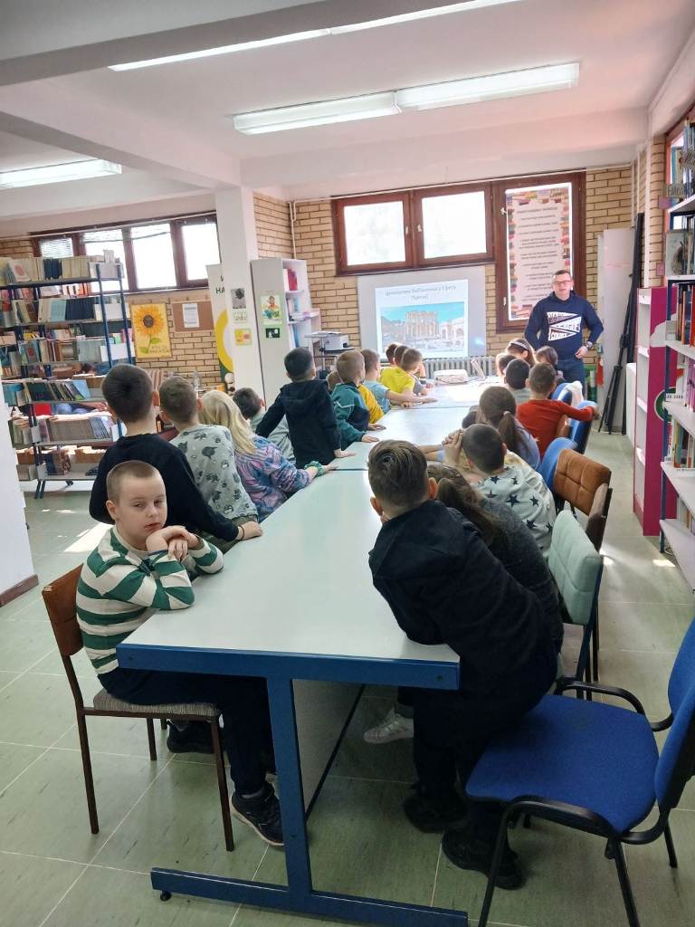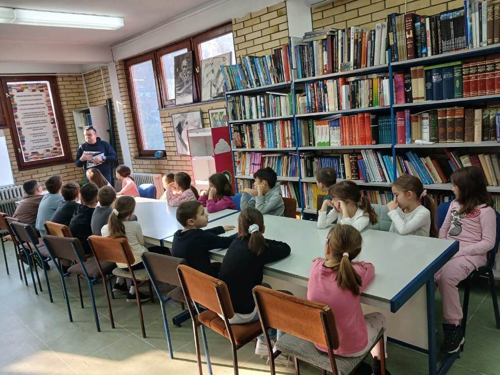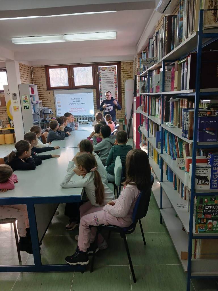 Прваци су са својим учитељицама Госпавом Илић, Весном Кокерић, Мирјаном Давидовић, Наташом Вучинић и Јеленом Томић прошли кроз малу авантуру виртуелног обиласка најлепших библиотека света, упознали се са правилима понашања у библиотеци, одиграли квиз знања кроз који су показали да су изузетно пажљиви и зрели и добили чланске карте; а кроз четрдесетпетоминутну авантуру водили су их наставници српског језика и библиотекари Снежана Јевтић и Драгомир Бурнаћ.