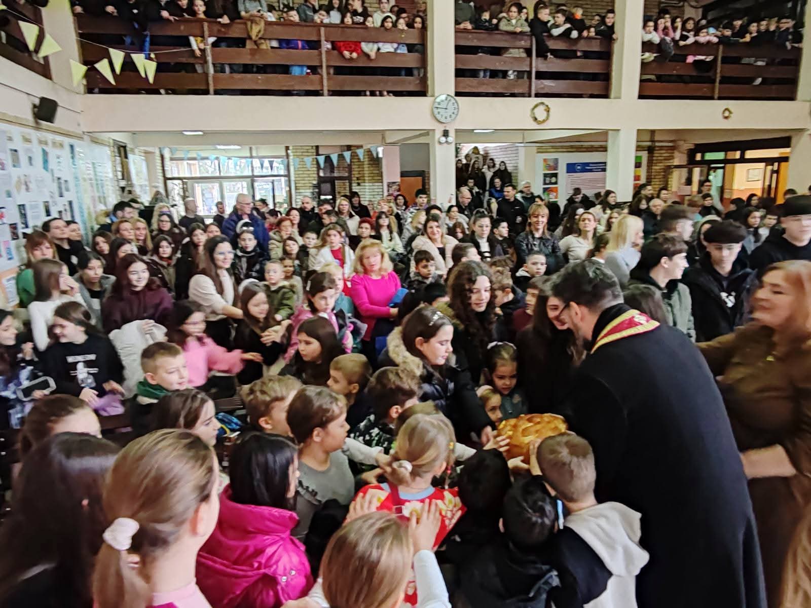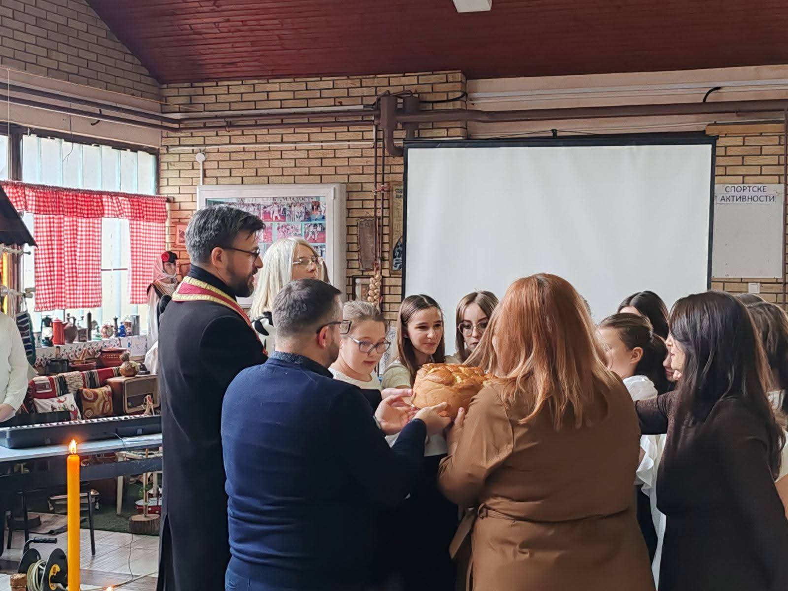 Молитву и сечење колача обавио је наш вероучитељ отац Владимир Петковић, пожеливши свима присутнима срећну и благословену славу.