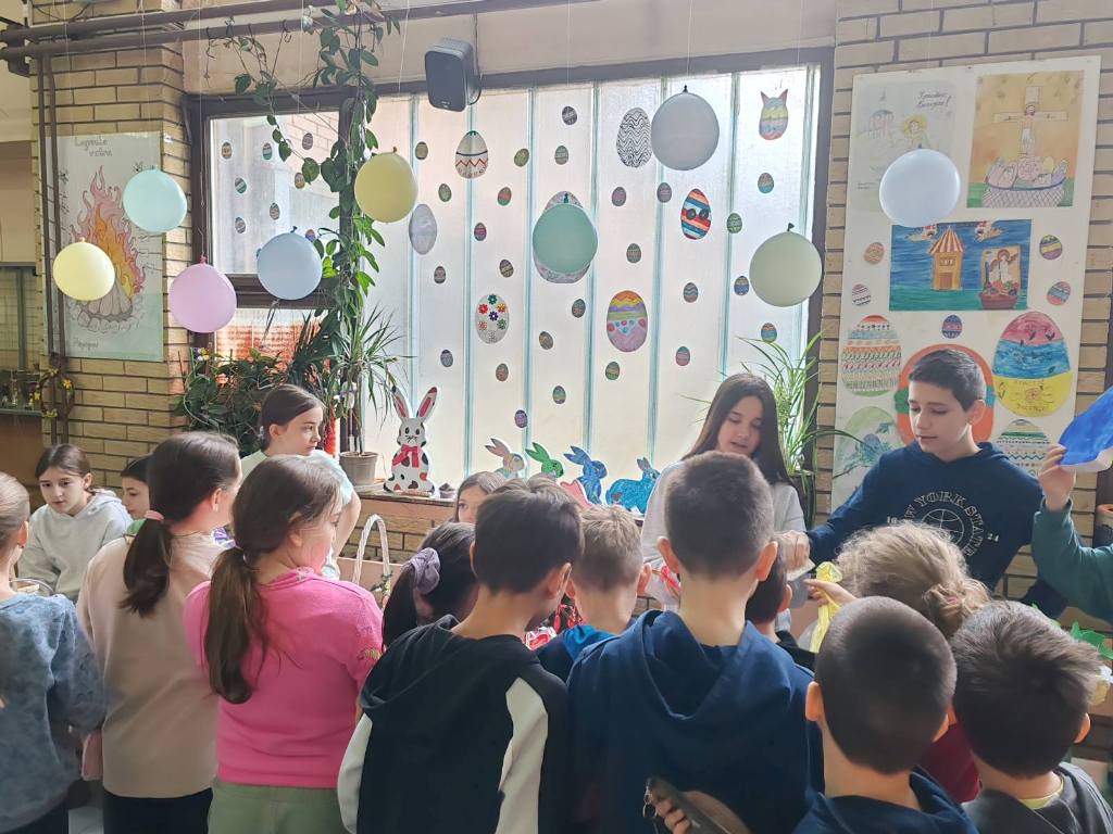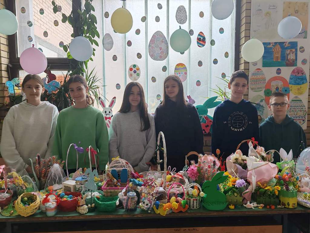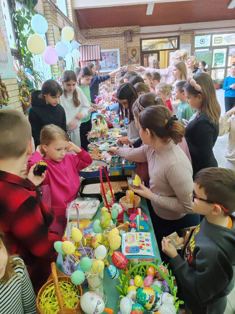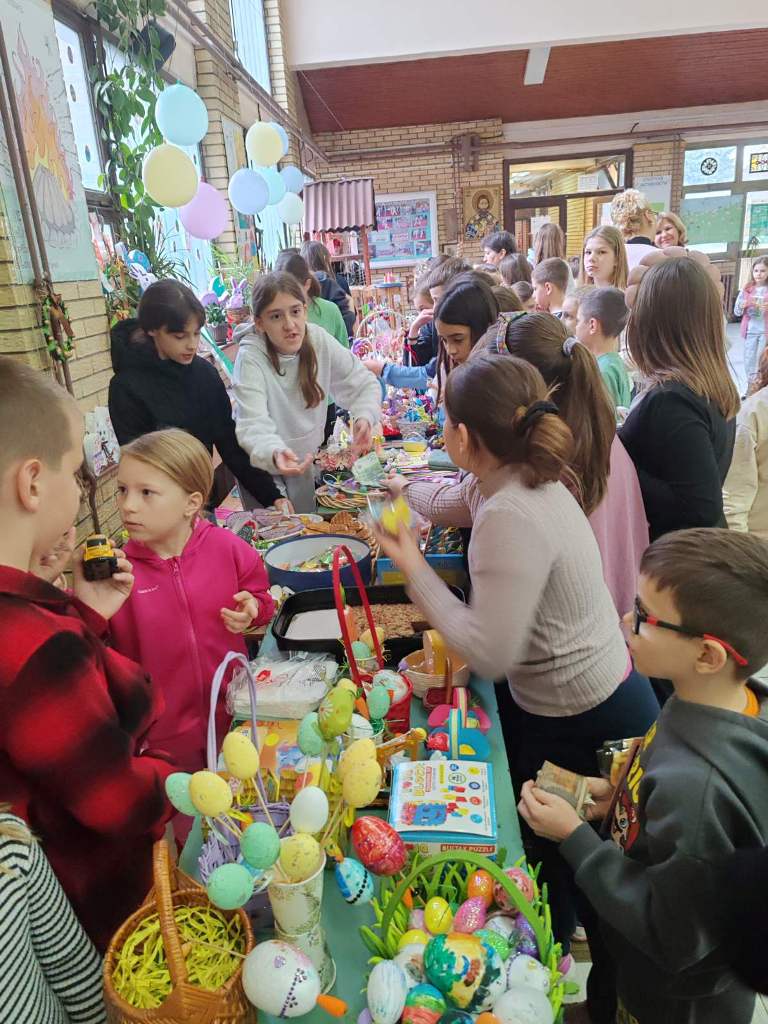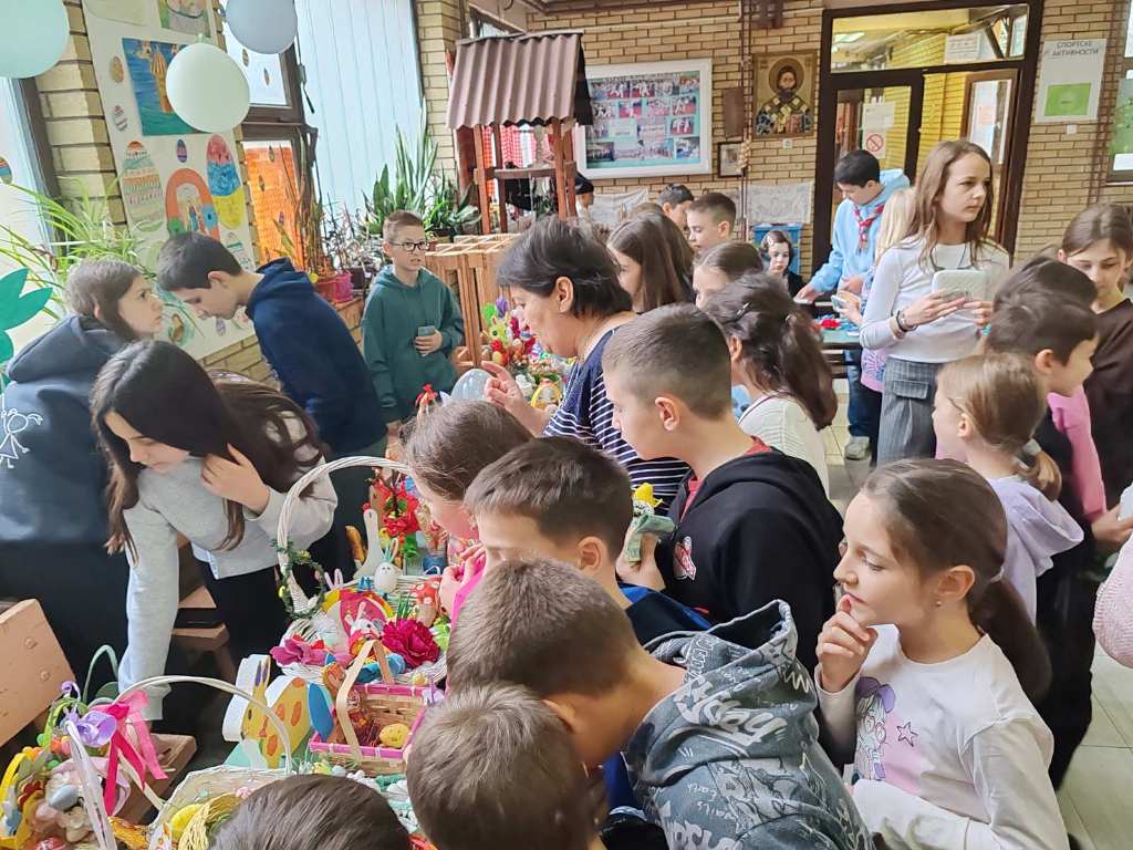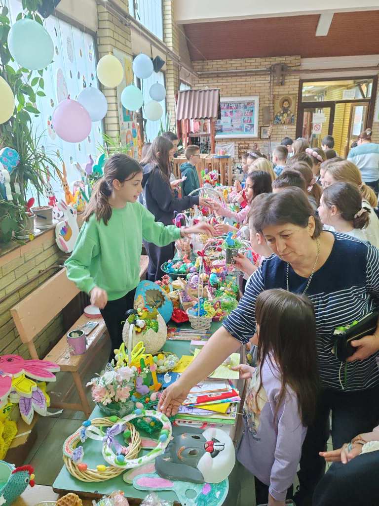 Данас је у холу школе одржан Хуманитарни васкршњи базар.